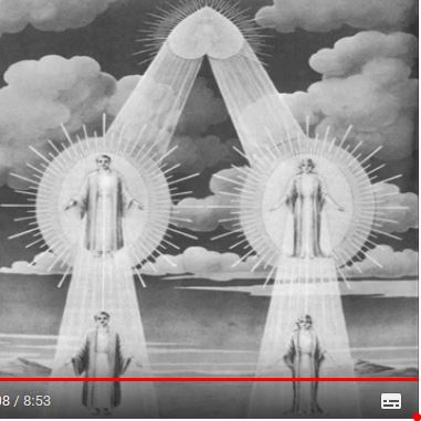 Après la reconnaissance de la deuxième flamme par la première, chacun deviendrait la croix de l’autre, le cheminement de l’autre (vers le Soi de chacun au centre des croix du thème), et le Salut de l’autre.